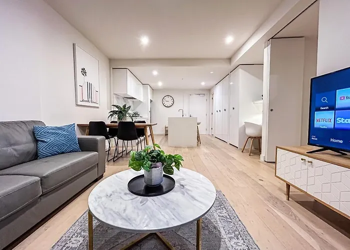 A Close To Mel Uni 2Br2Ba Parking Balconywifi apartman magába foglal ülősarkot, konyhát és teljesen felszerelt konyhát klímaberendezéssel a maximális kényelem érdekében. A 2 hálószobás apartman fürdőszobája hajszárítóval, szárítóval és törölközőkkel felszerelt.